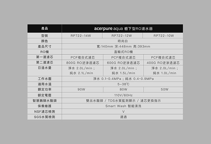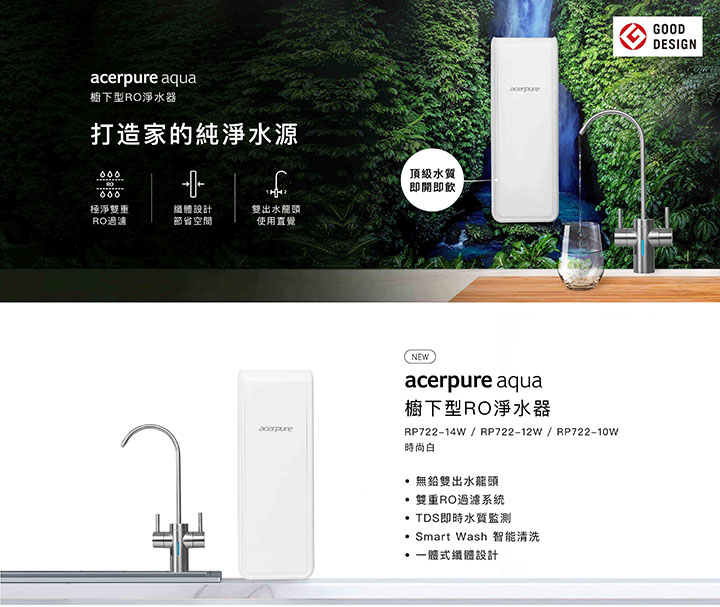 型號:acerpure 櫥下型RO淨水器(600G) RP722-12W