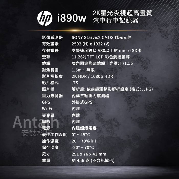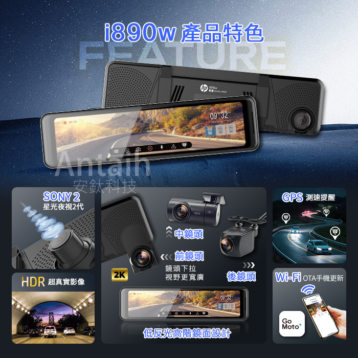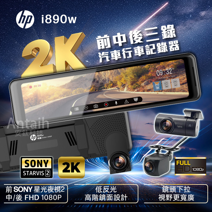 【HP 惠普】i890w 三錄|前後Sony星光二代|電子後視鏡旗艦機|送尊榮安裝|WIFI|行車記錄器|◉80D028