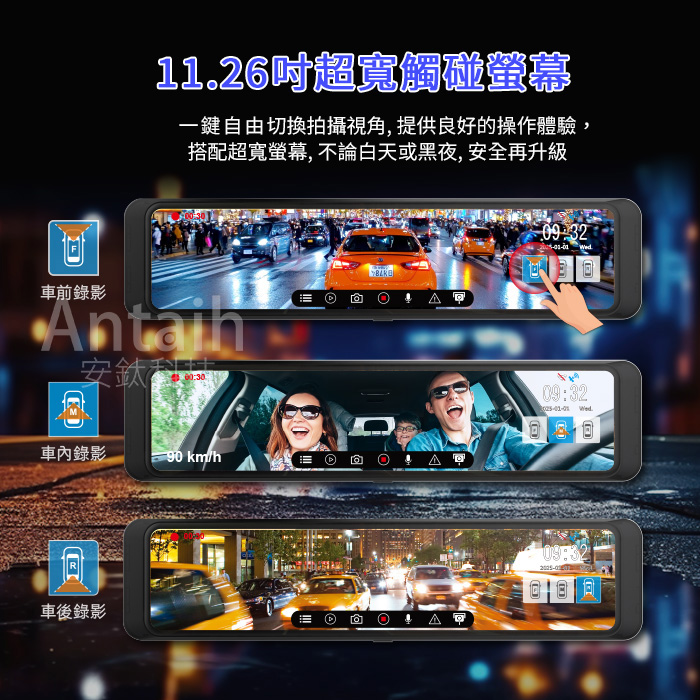 - ● 11.26吋全屏觸控輕鬆切換拍攝畫面