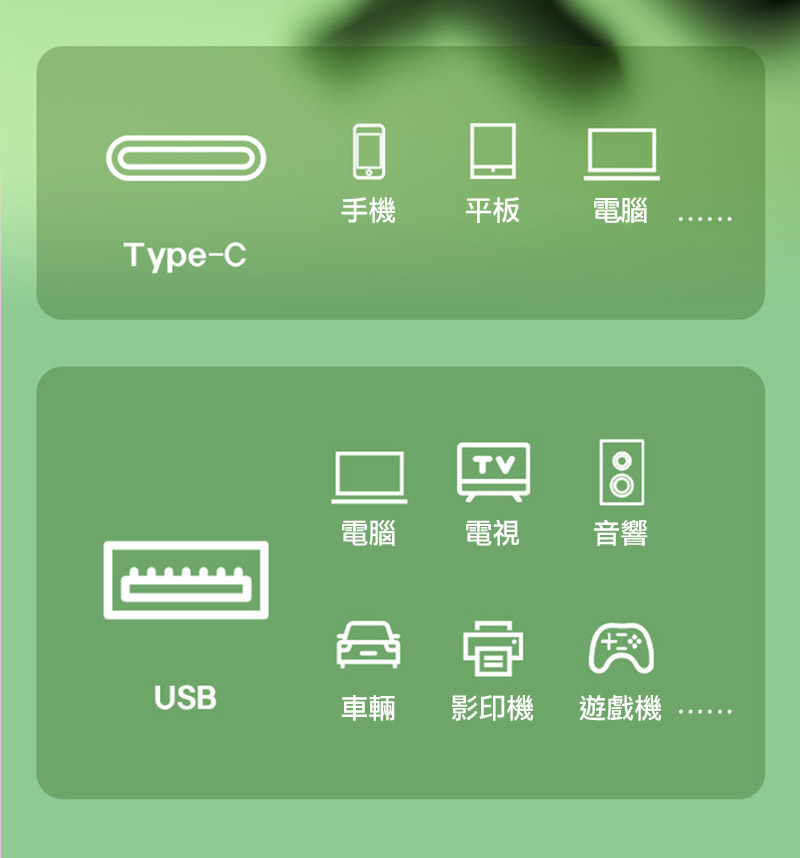 - 適用機型:電腦/支援 Type-C OTG 之行動裝置
