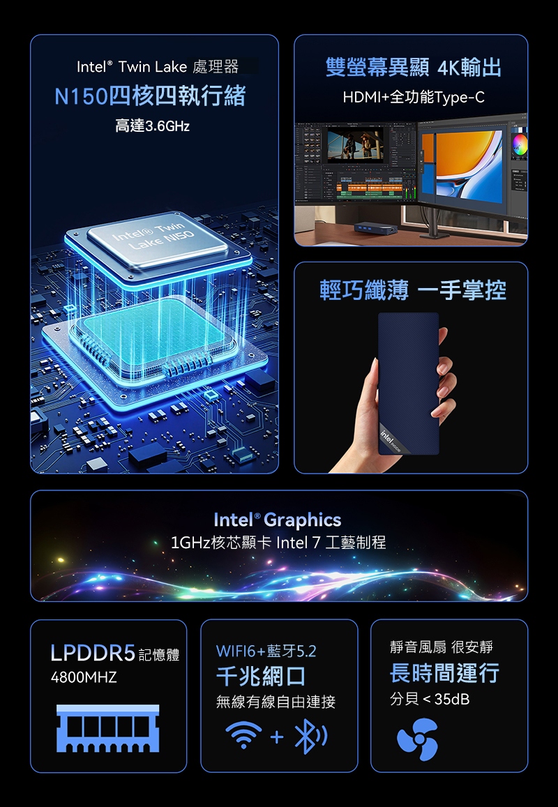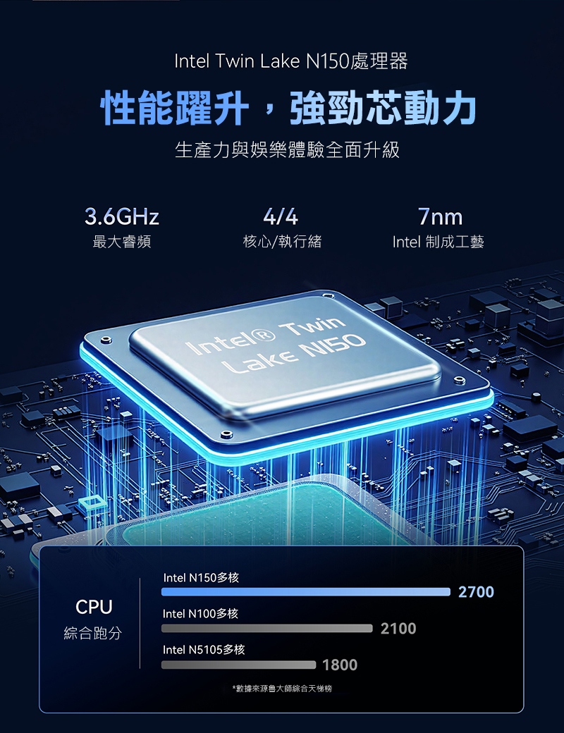 .Intel Twin Lake 處理器 N150 4核4執行緒 3.6GHz, 6W TDP, 6MB 快取記憶體