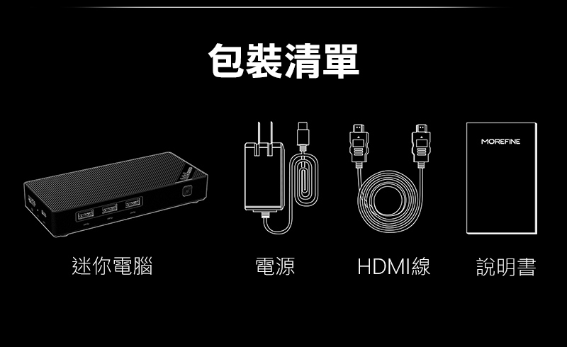 .內容物:M10 迷你電腦(Intel N150 3.6GHz)*1、專用電源變壓器(100~240V)*1、HDMI線*1