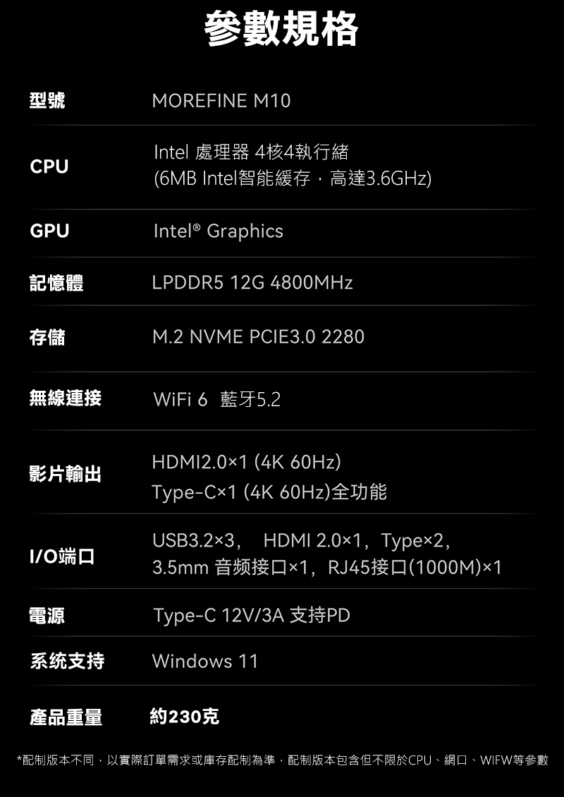 MOREFINE M10 迷你電腦(Intel N150 3.6GHz) - 12G/512G WIN11◉80B031