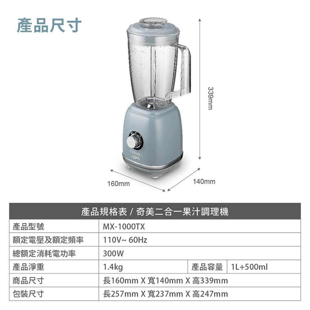 CHIMEI 奇美 復古美型 二合一果汁調理機 MX-1000TX