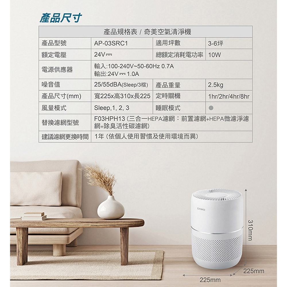 CHIMEI 奇美 360度全淨化 DC省電空氣清淨機 AP-03SRC1◉80B034