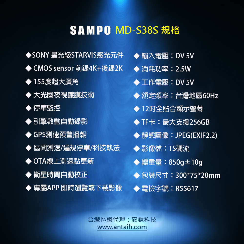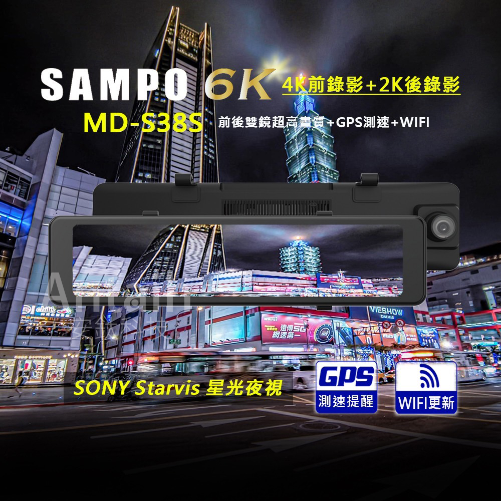 【SAMPO聲寶】MD-S38S|6K電子後視鏡|送尊榮安裝|前4K+後2K|GPS測速|SONY星光夜視 ◉80D028