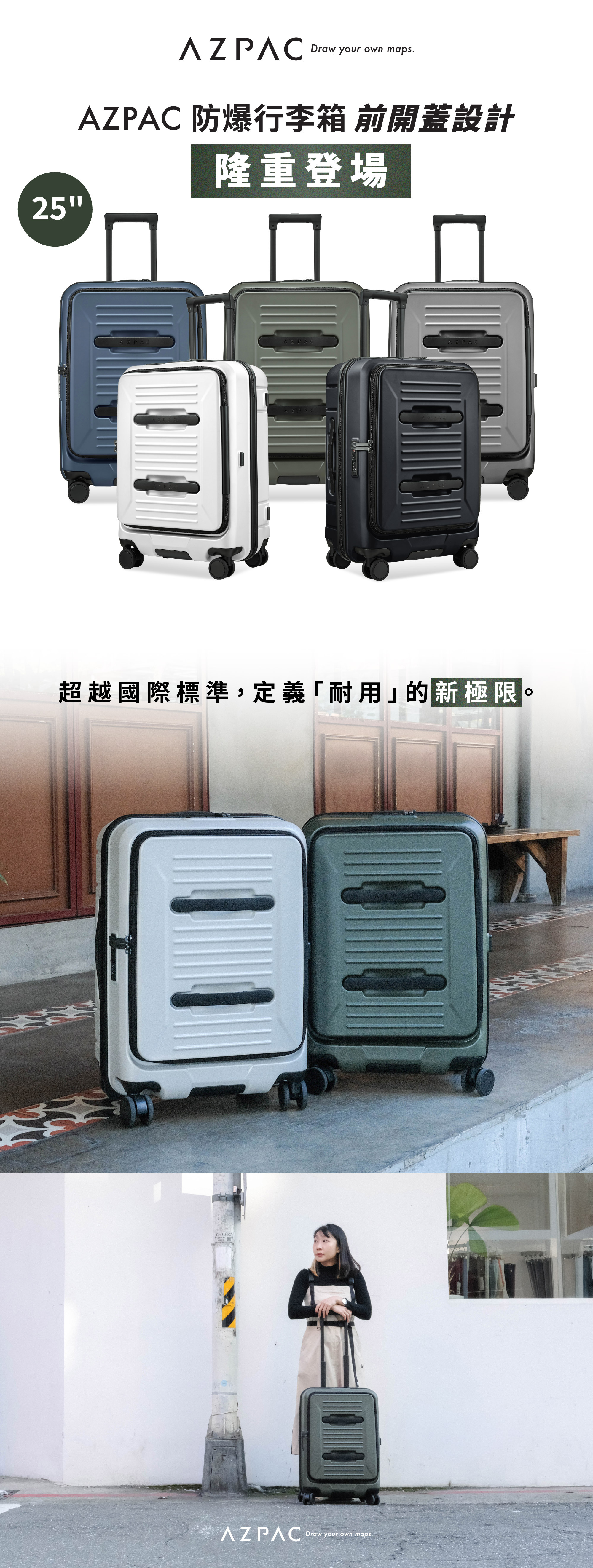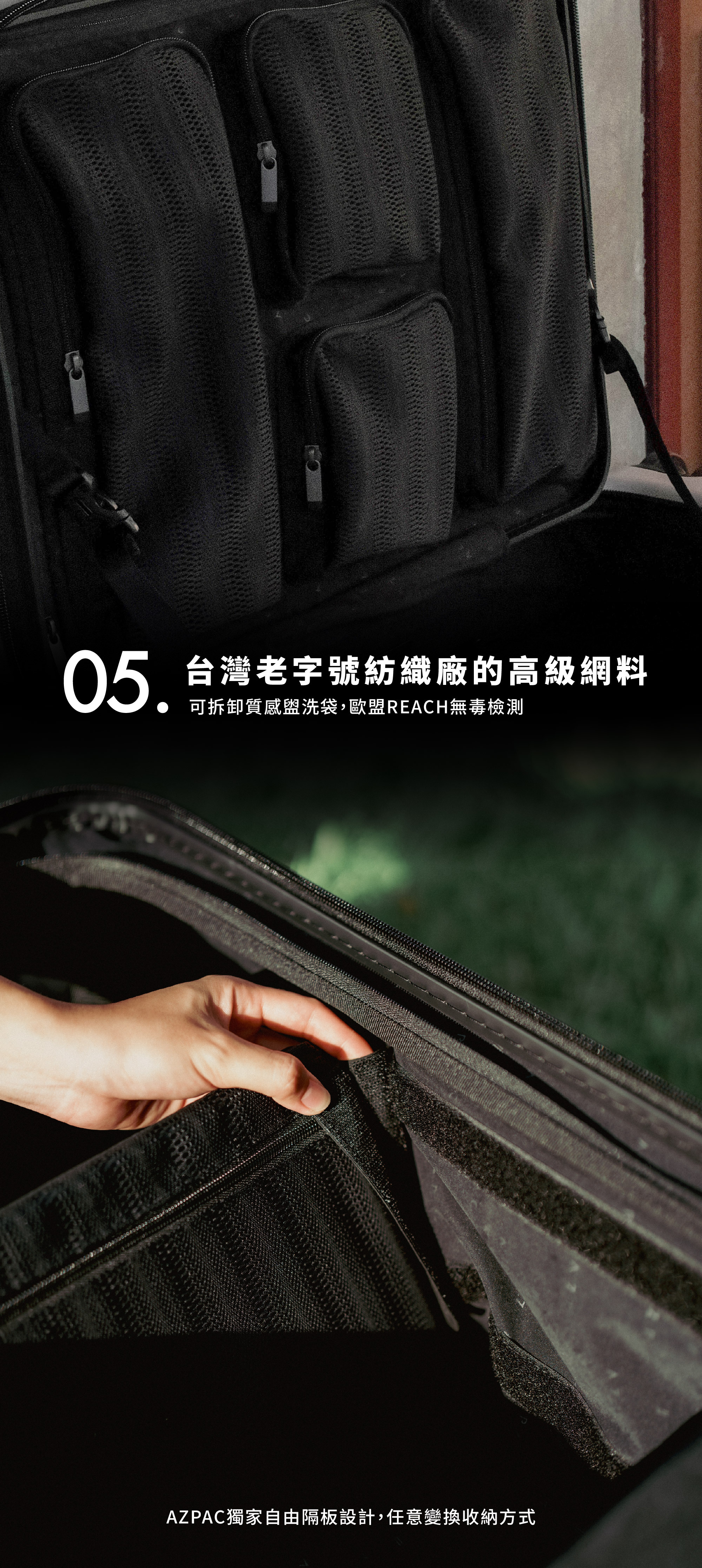 • AZPAC獨家自由隔板設計,任意變換收納方式• 可拆卸質感盥洗袋,歐盟REACH無毒檢測