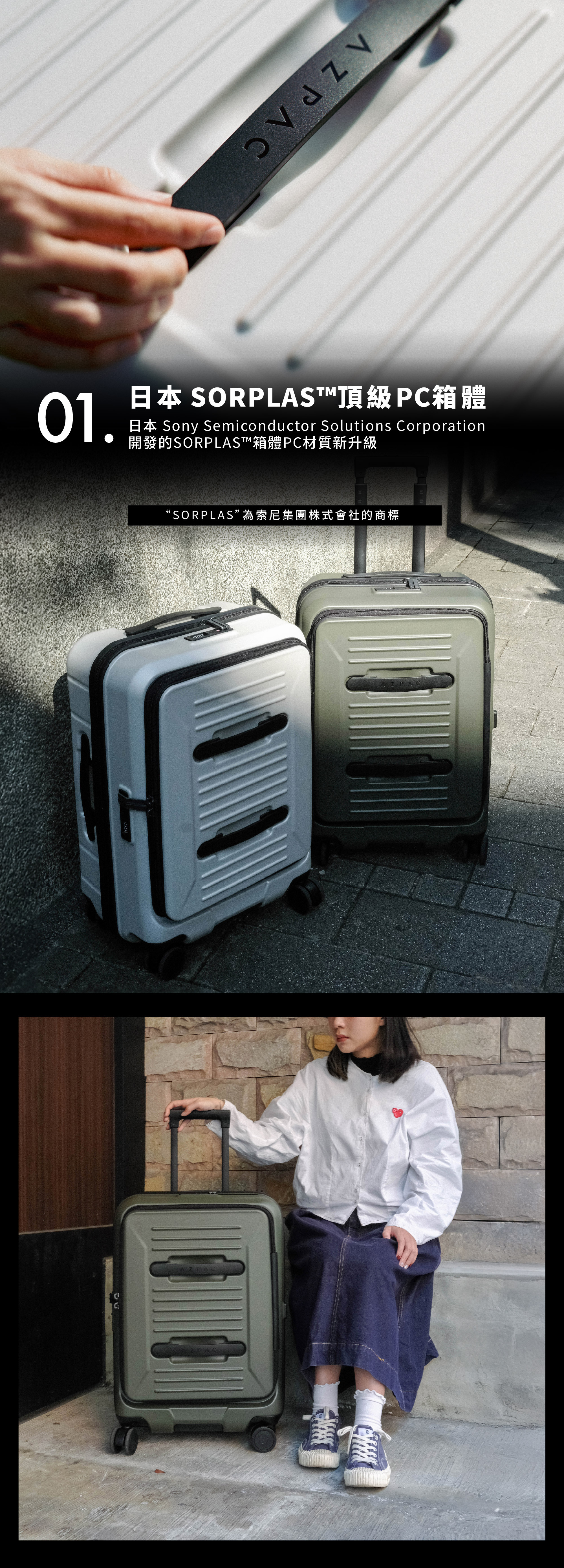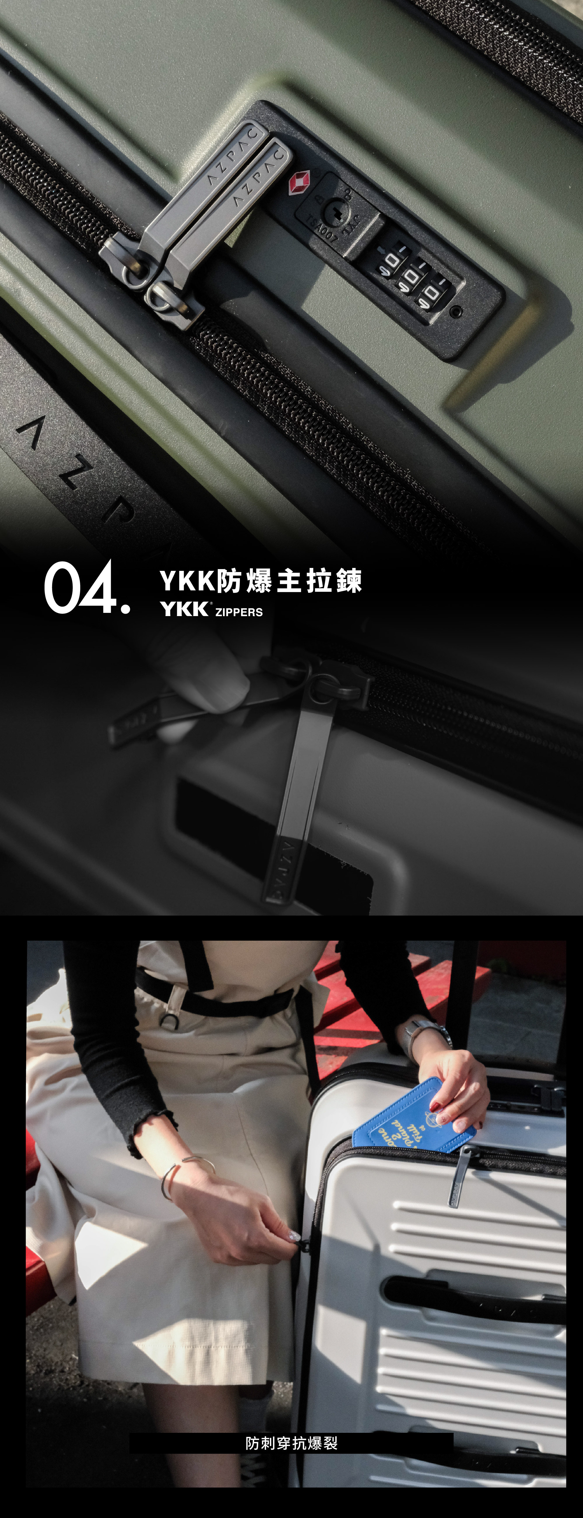 • SORPLAS™ 高強度材質頂級PC箱體• YKK雙層防爆主拉鍊,防刺穿抗爆裂