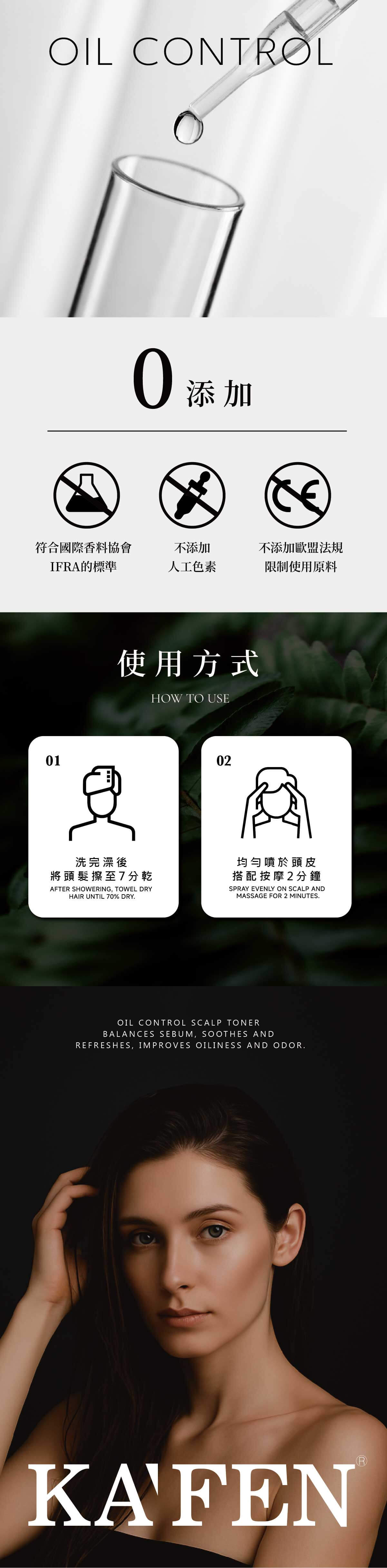 - KAFEN 抑油舒壓頭皮滋養液,專為油性頭皮設計。