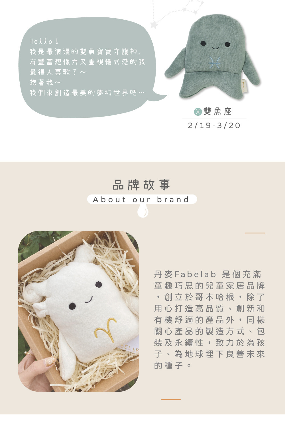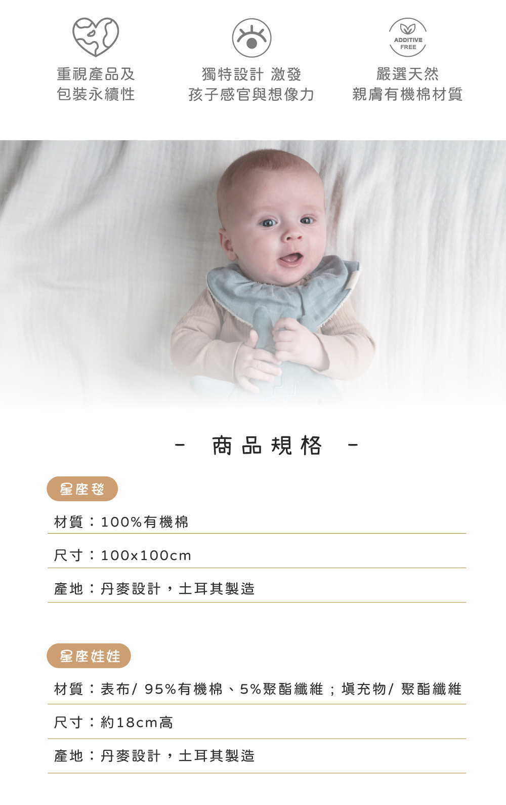 材質:表布/ 95%有機棉、5%聚脂纖維 ; 填充物/ 聚脂纖維
