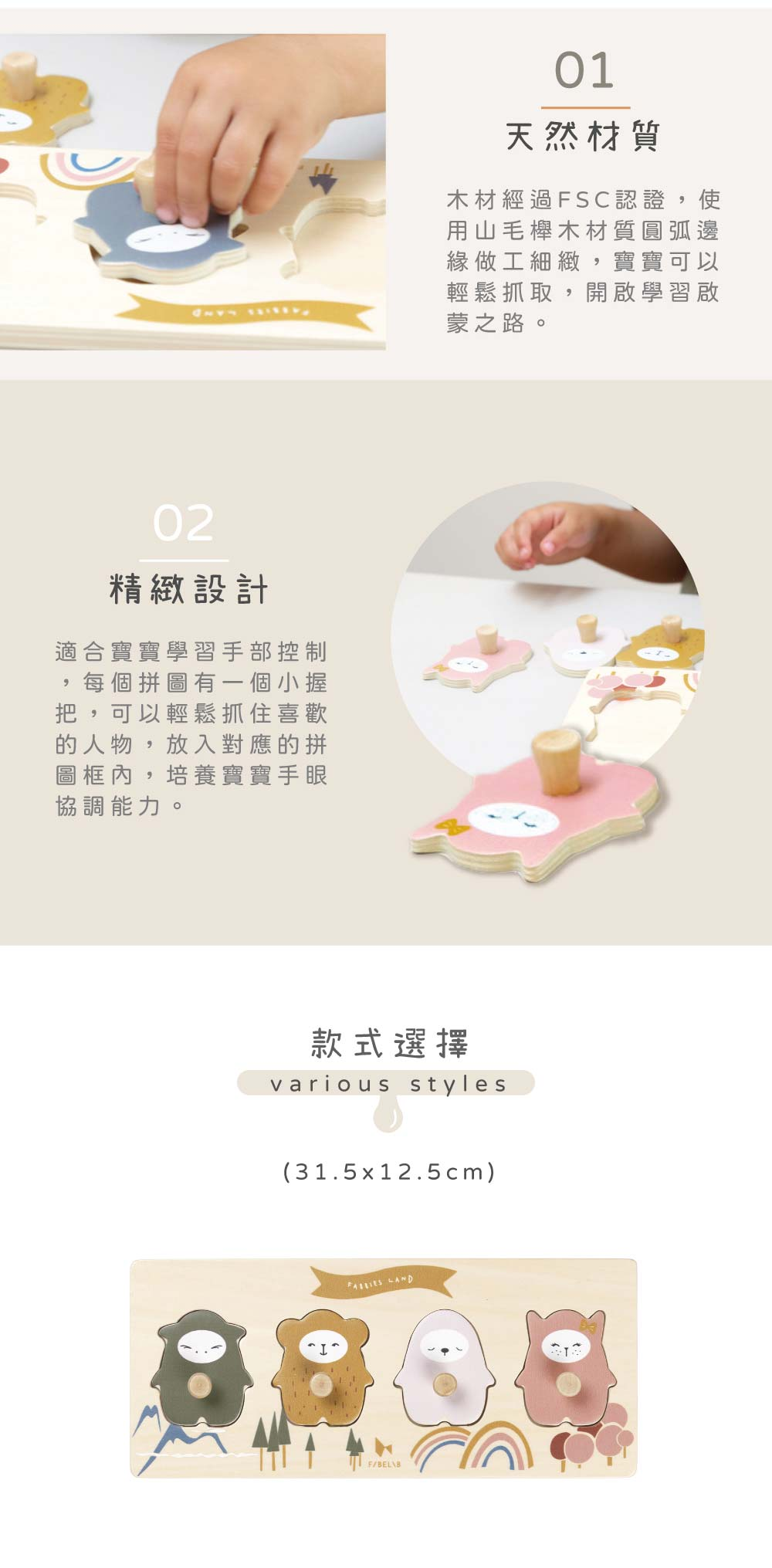 - Fabelab手握動物拼圖,適合寶寶學習手部控制